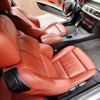 Competition Coupe in EXTREMLY HARD TO FIND SPECS, Alpine White over Fox Red, Carbon Roof, Manual Seats, Non heated seats, No i-Drive, No navigation, and no power folding mirrors.